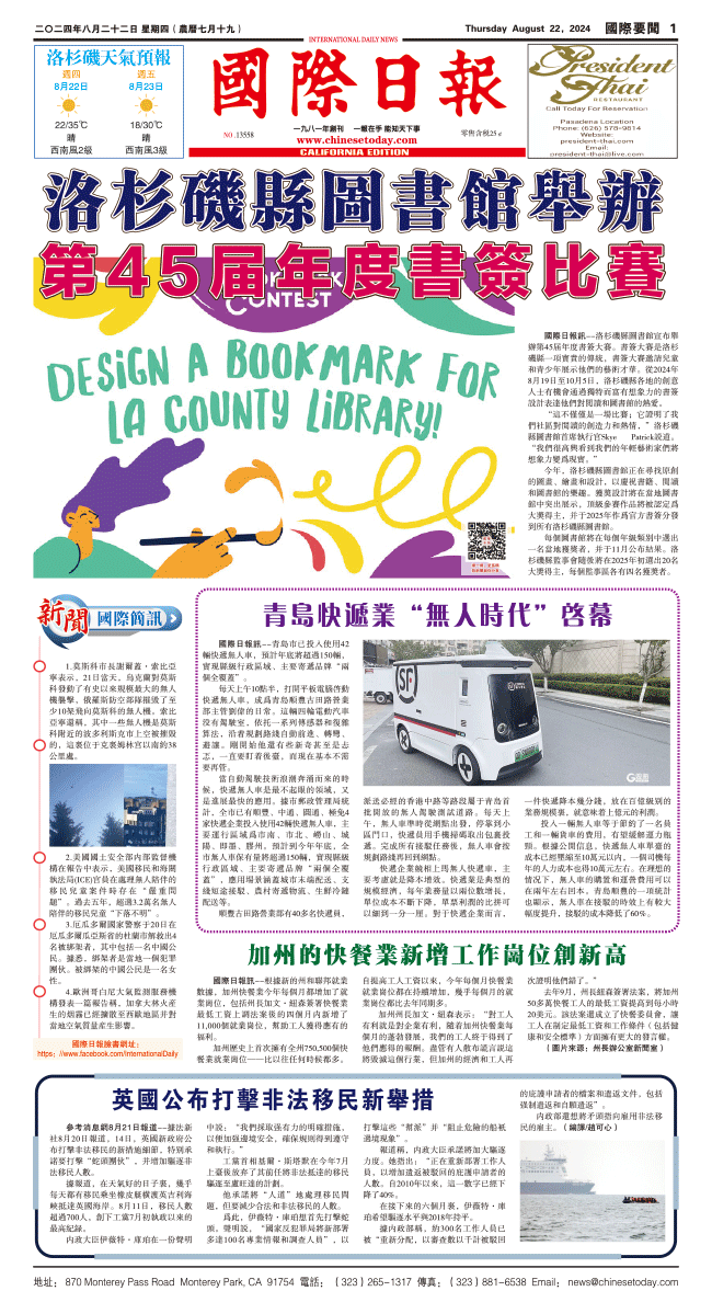 22日國際日報1-國際要聞 发布日期:2024/8/22 来源:國際日報 打印