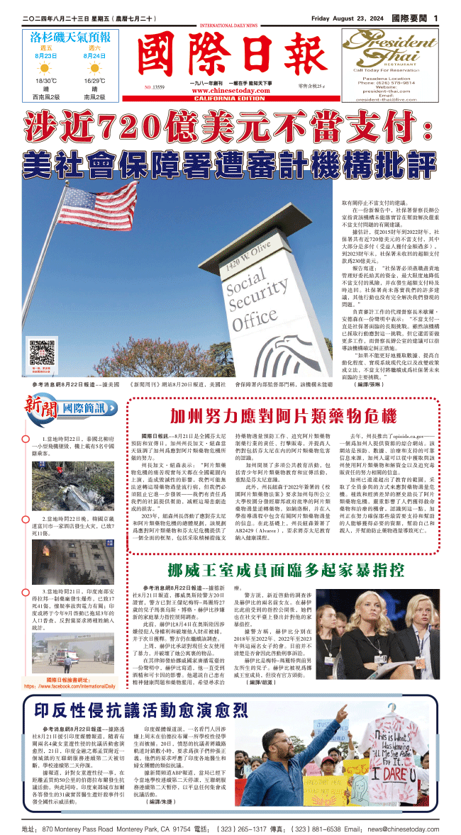 23日國際日報1-國際要聞 发布日期:2024/8/23 来源:國際日報 打印