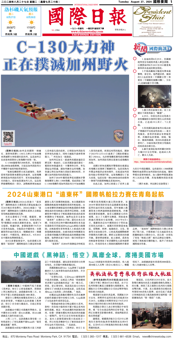 27日國際日報1-國際要聞 发布日期:2024/8/27 来源:國際日報 打印