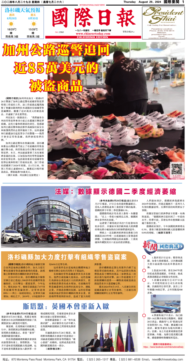 29日國際日報1-國際要聞 发布日期:2024/8/29 来源:國際日報 打印