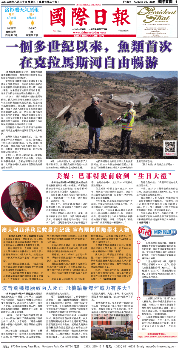 30日國際日報1-國際要聞 发布日期:2024/8/30 来源:國際日報 打印