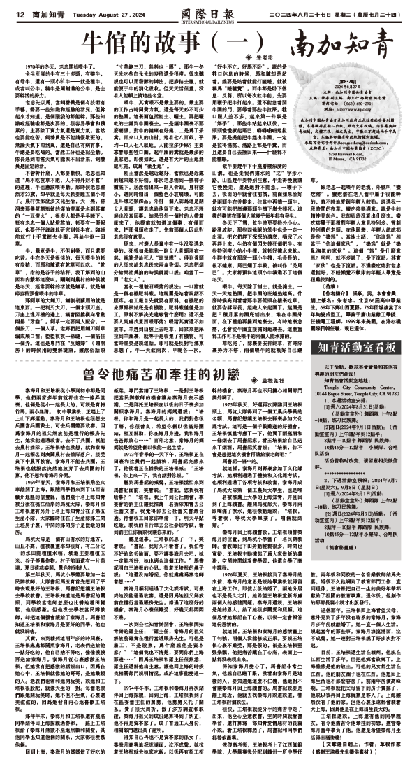 27日國際日報12-南加知青 发布日期:2024/9/3 来源: 打印