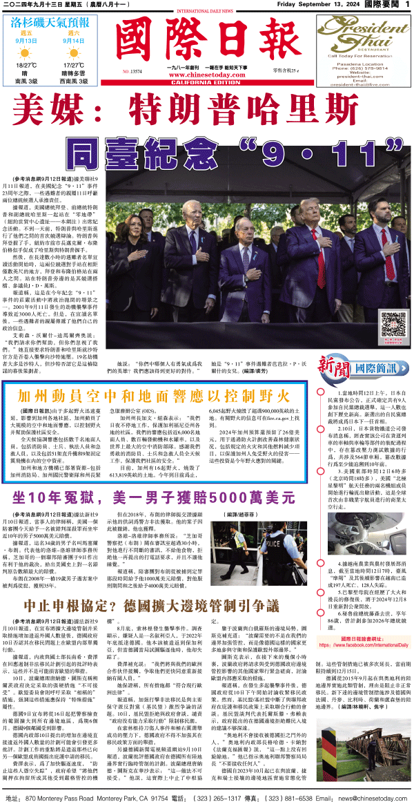 13日國際日報1-國際要聞 发布日期:2024/9/13 来源:國際日報 打印