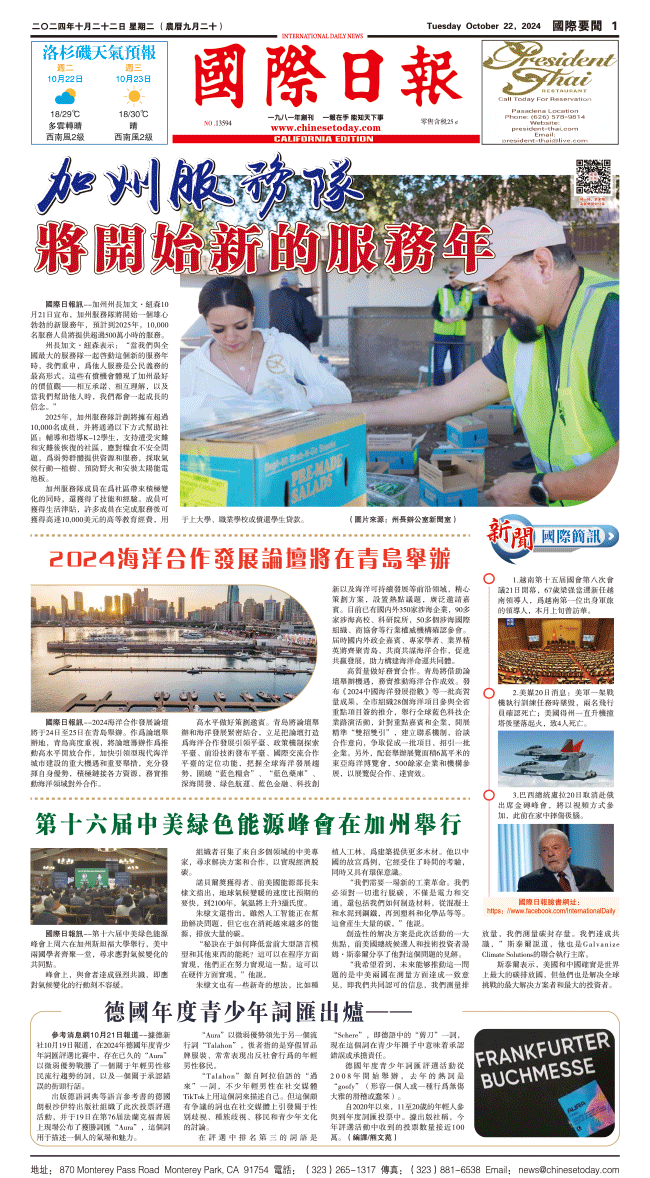 22日國際日報1-國際要聞 发布日期:2024/10/22 来源:國際日報 打印