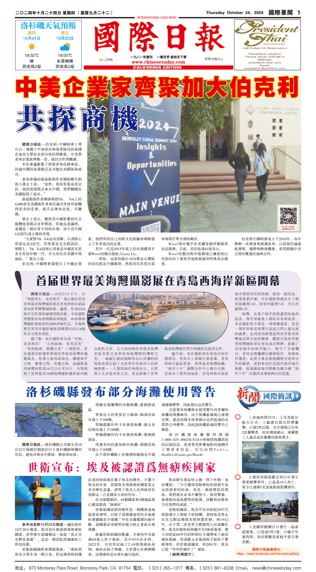24日國際日報1-國際要聞 发布日期:2024/10/25 来源:國際日報 打印