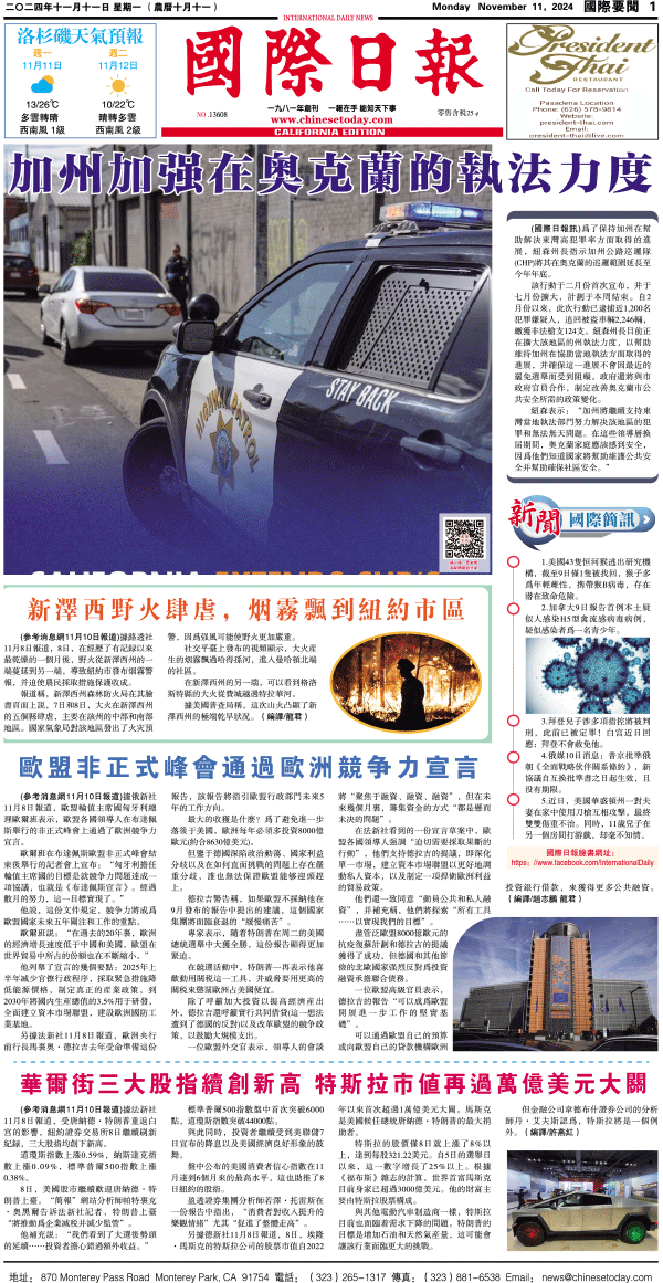 11日國際日報1-國際要聞 发布日期:2024/11/11 来源:國際日報 打印