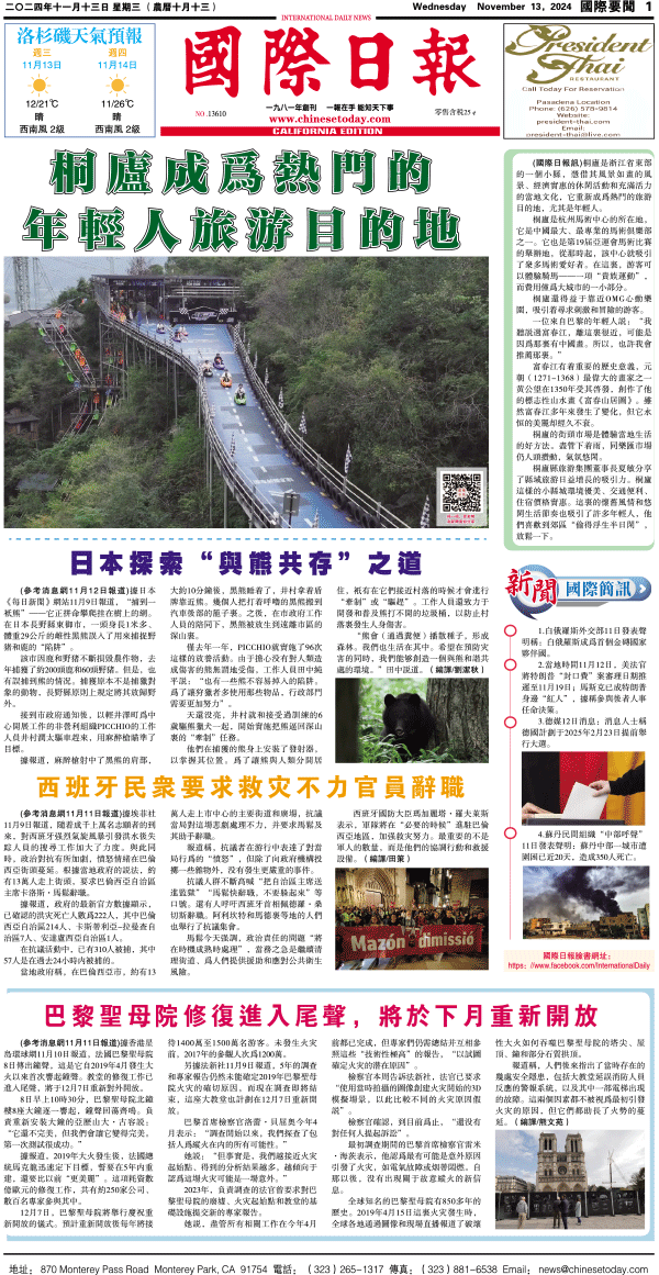 13日國際日報1-國際要聞 发布日期:2024/11/13 来源:國際日報 打印