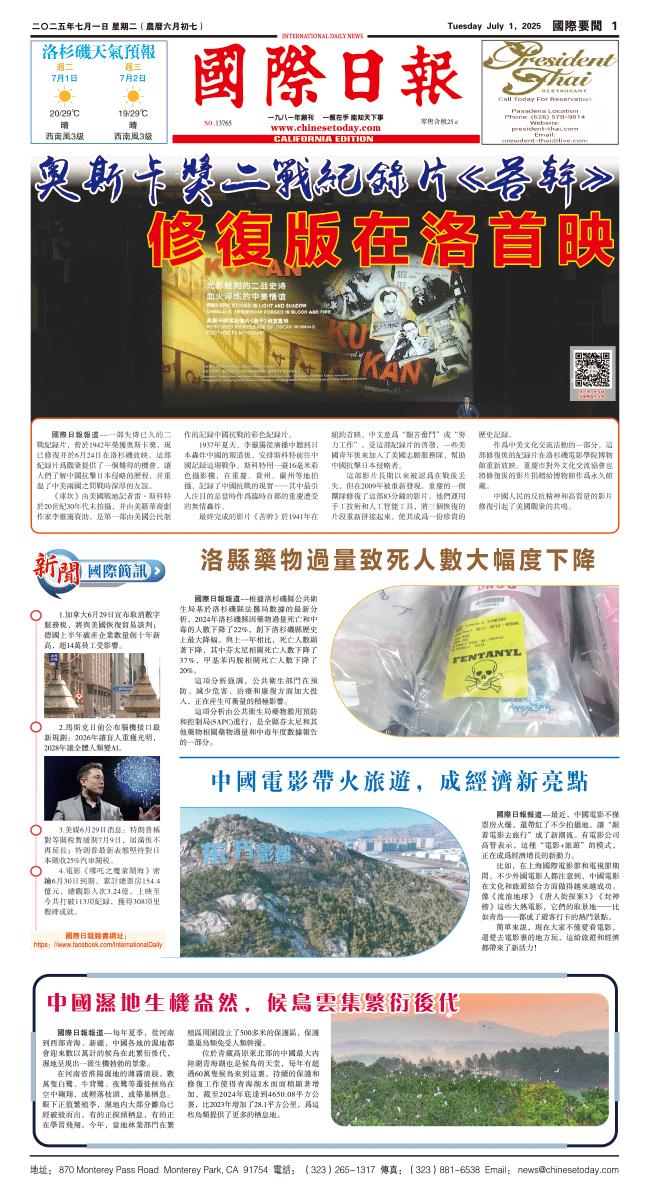 1日國際日報1-國際要聞 发布日期:2025/7/1 来源:國際日報 打印
