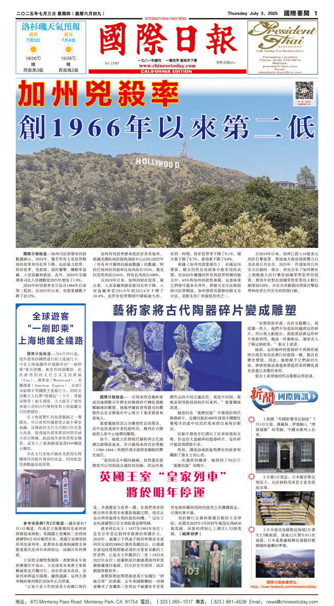 3日國際日報1-國際要聞 发布日期:2025/7/3 来源:國際日報 打印