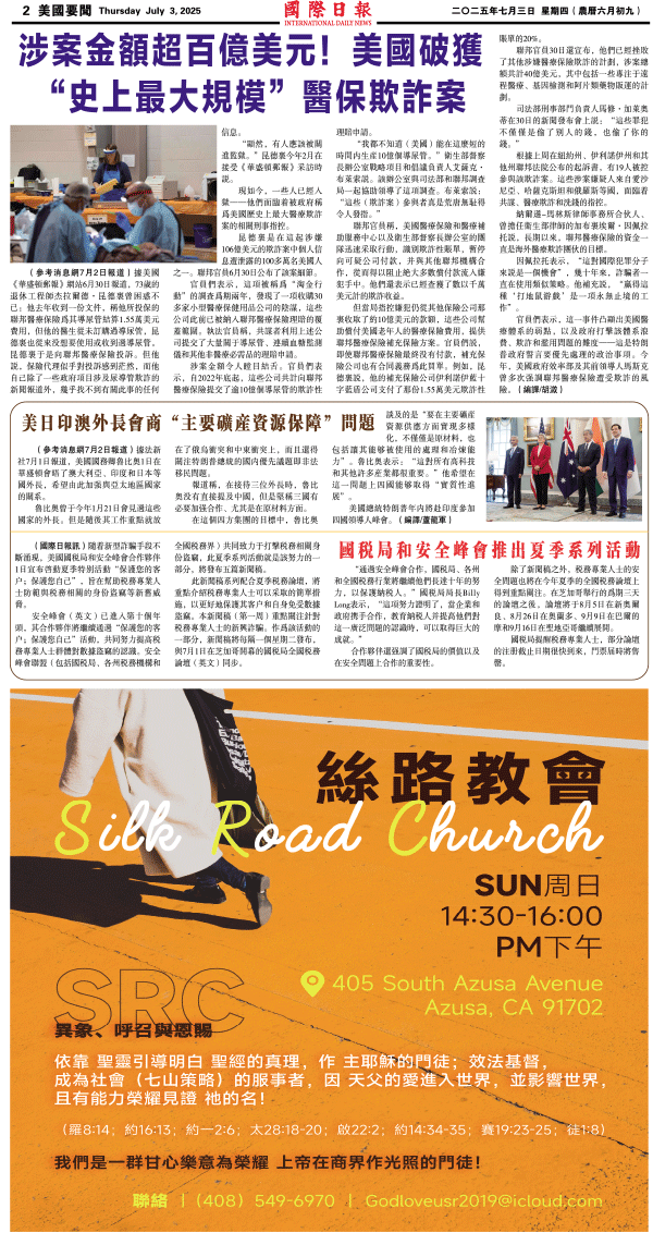 3日國際日報2-美國要聞 发布日期:2025/7/4 来源:國際日報 打印