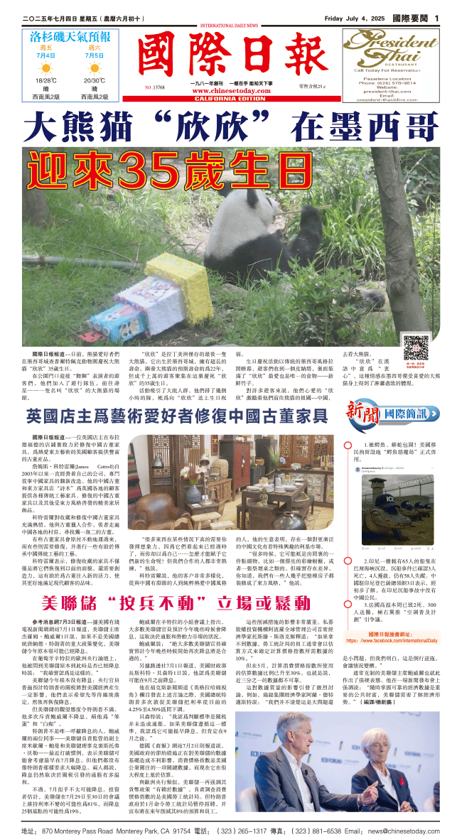4日國際日報1-國際要聞 发布日期:2025/7/4 来源:國際日報 打印