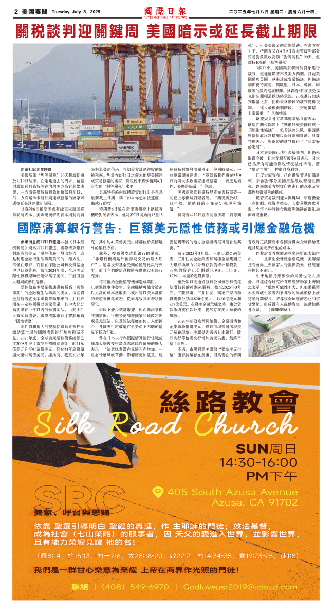 8日國際日報2-美國要聞 发布日期:2025/7/8 来源:國際日報 打印