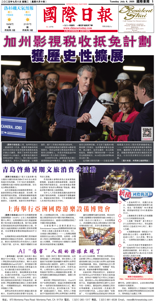 8日國際日報1-國際要聞 发布日期:2025/7/9 来源:國際日報 打印