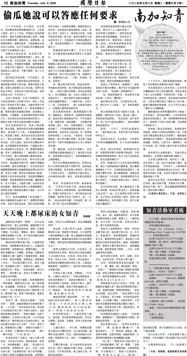 8日國際日報12-南加知青 发布日期:2025/7/9 来源:國際日報 打印