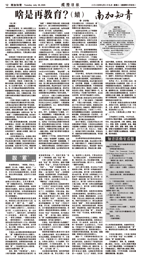 29日國際日報12-南加知青 发布日期:2025/7/30 来源: 打印