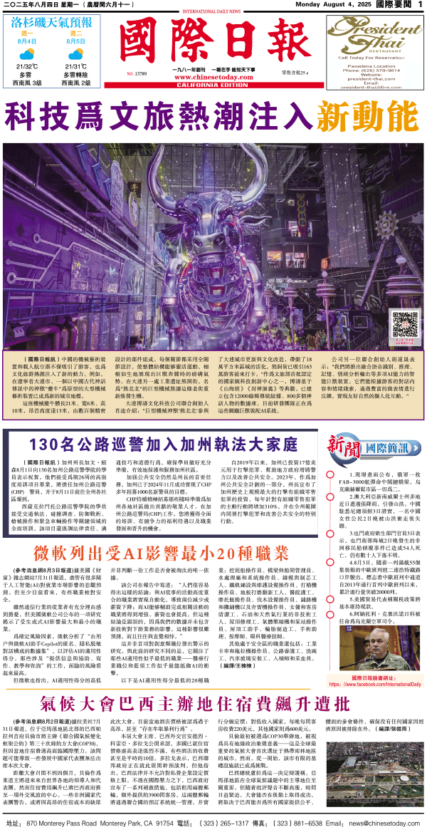 4日國際日報1-國際要聞 发布日期:2025/8/5 来源:國際日報 打印