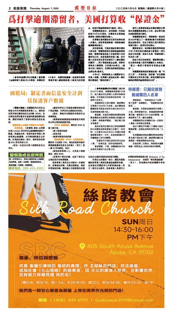 7日國際日報2-美國要聞 发布日期:2025/8/8 来源: 打印