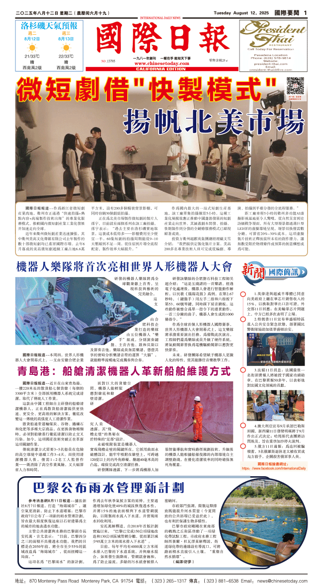 12日國際日報1-國際要聞 发布日期:2025/8/12 来源:國際日報 打印