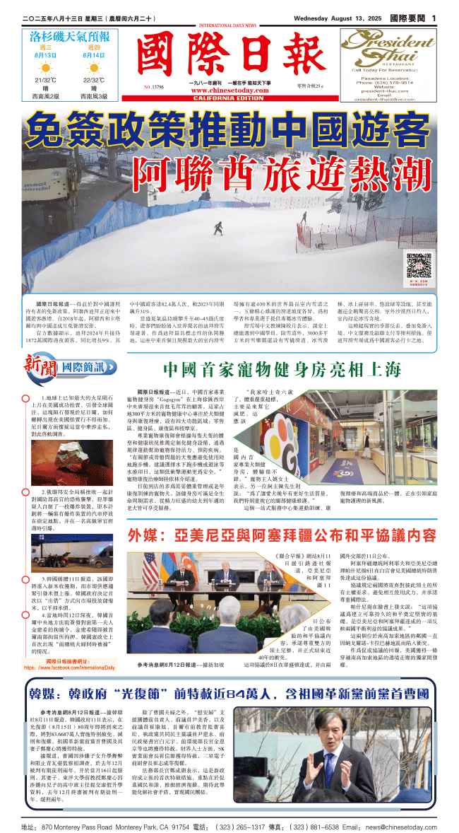 13日國際日報1-美國要聞 发布日期:2025/8/13 来源:國際日報 打印