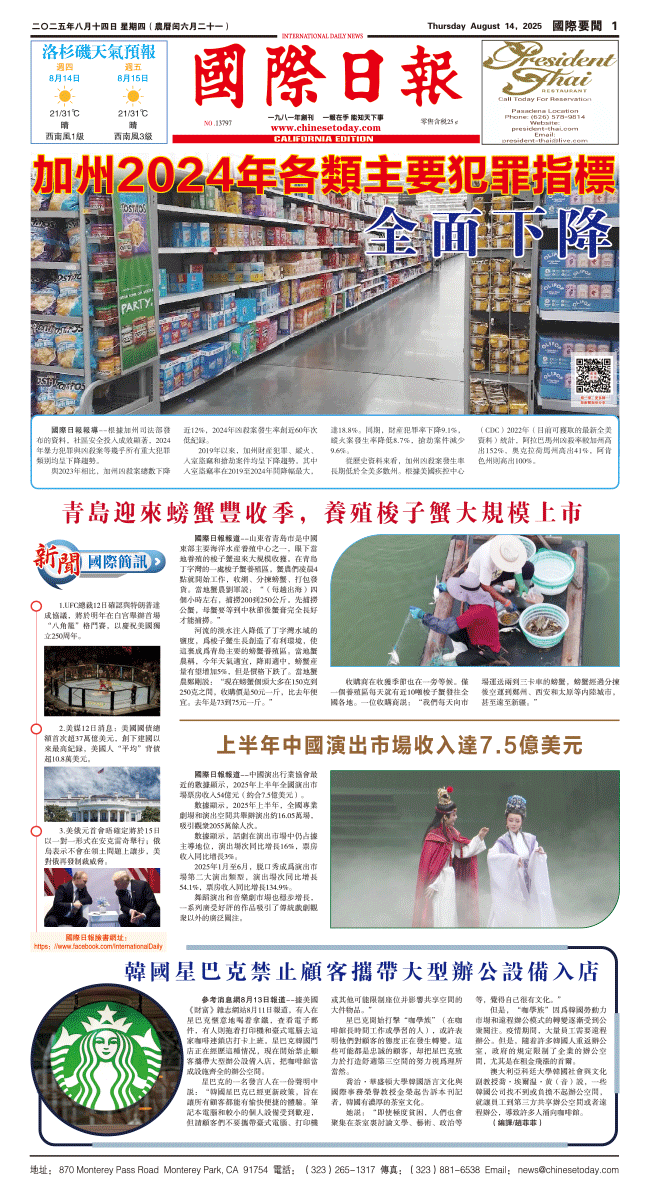 14日國際日報1-國際要聞 发布日期:2025/8/14 来源:國際日報 打印