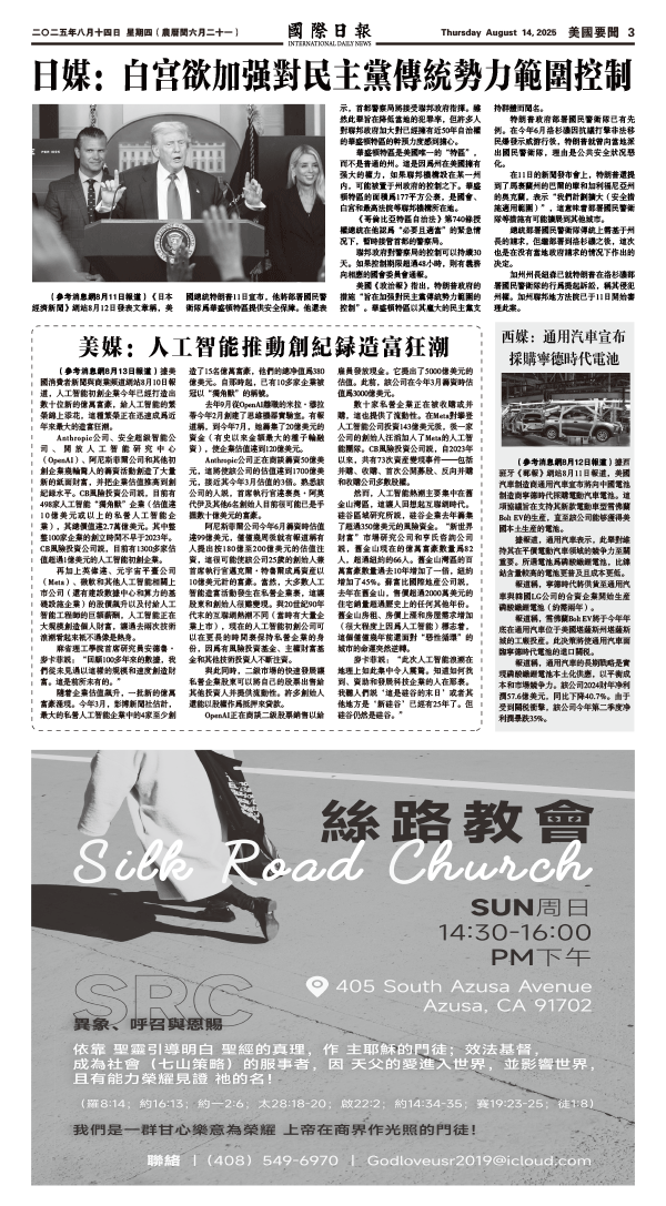 14日國際日報3-美國要聞 发布日期:2025/8/14 来源: 打印