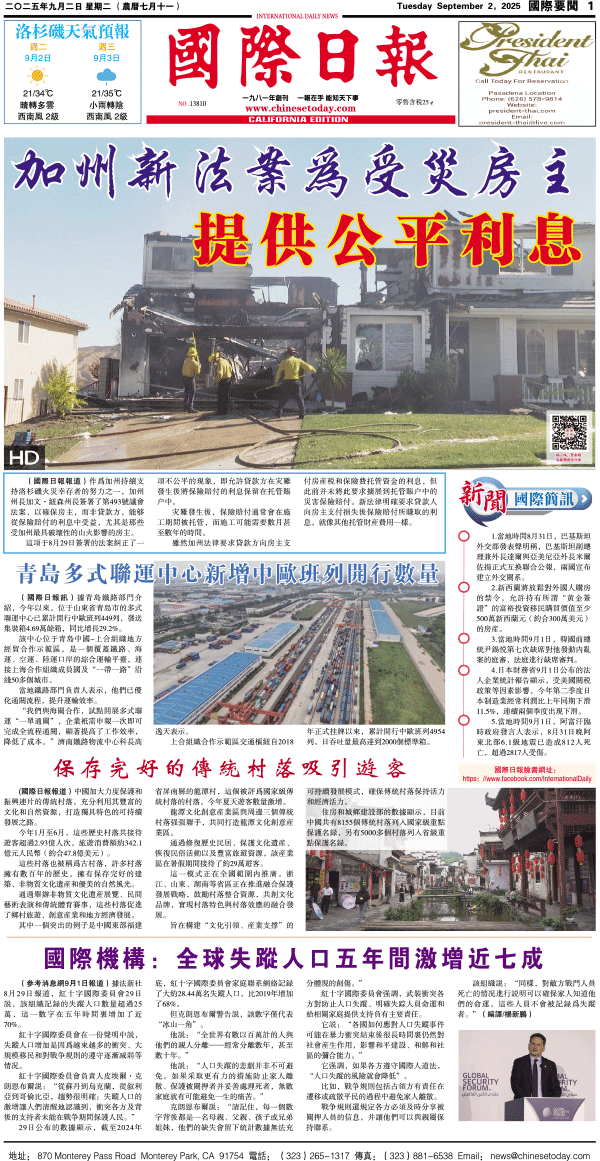 2日國際日報1-國際要聞 发布日期:2025/9/3 来源:國際日報 打印
