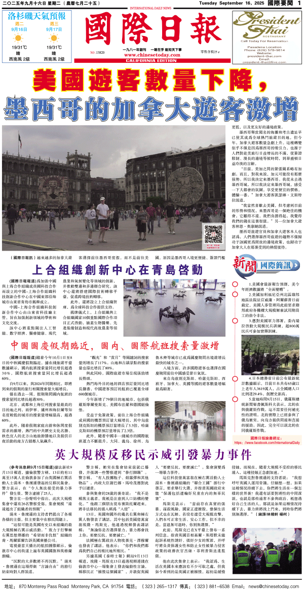 16日國際日報1-國際要聞 发布日期:2025/9/17 来源:國際日報 打印