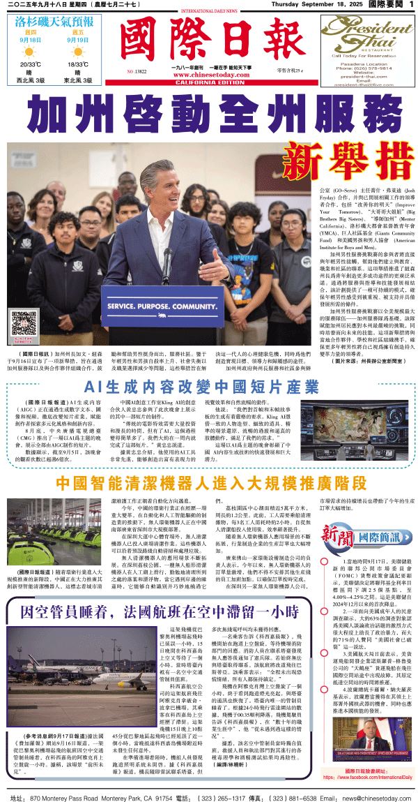 18日國際日報1-國際要聞 发布日期:2025/9/19 来源:國際日報 打印