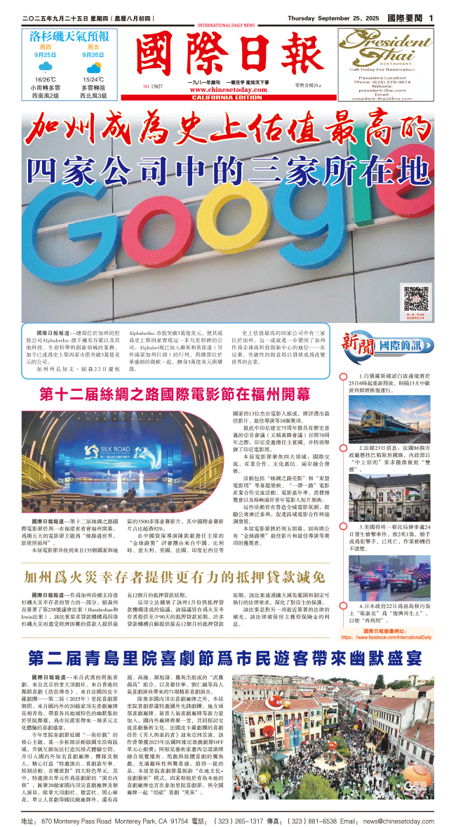 25日國際日報1-國際要聞 发布日期:2025/9/25 来源:國際日報 打印