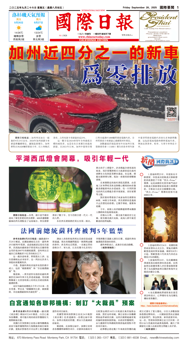 26日國際日報1-國際要聞 发布日期:2025/9/27 来源:國際日報 打印