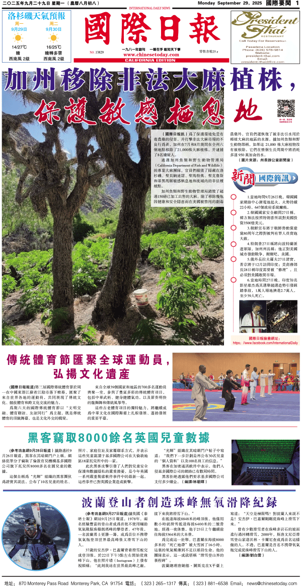 29日國際日報1-國際要聞 发布日期:2025/9/30 来源:國際日報 打印
