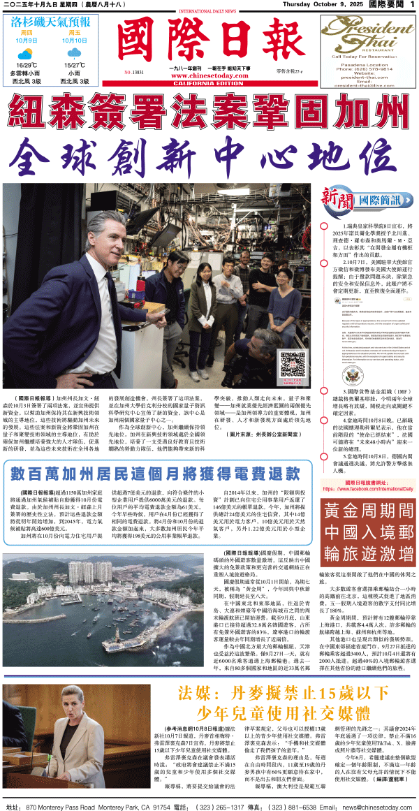 9日國際日報1-國際要聞 发布日期:2025/10/10 来源:國際日報 打印