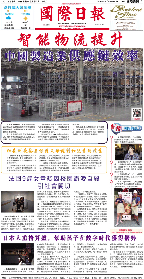 20日國際日報1-國際要聞 发布日期:2025/10/20 来源:國際日報 打印