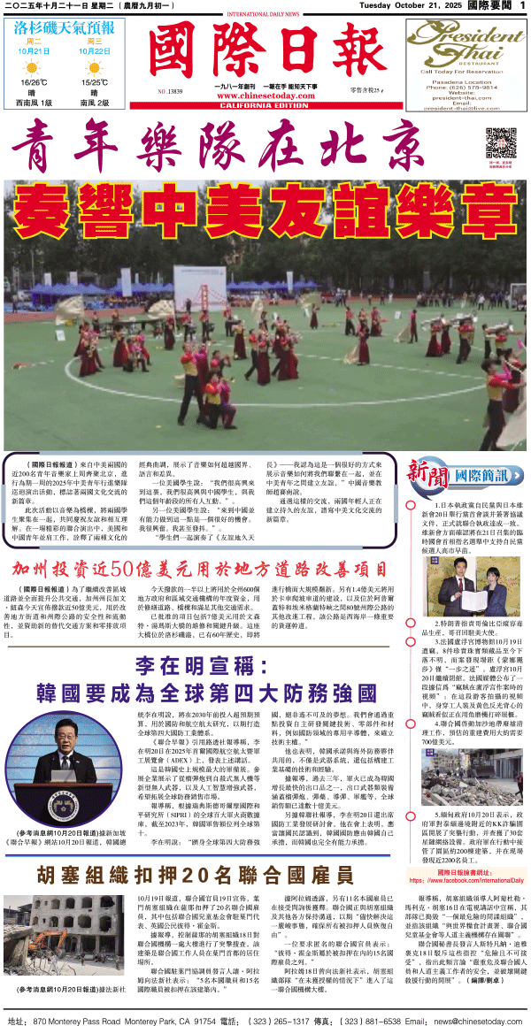 21日國際日報1-國際要聞 发布日期:2025/10/21 来源:國際日報 打印