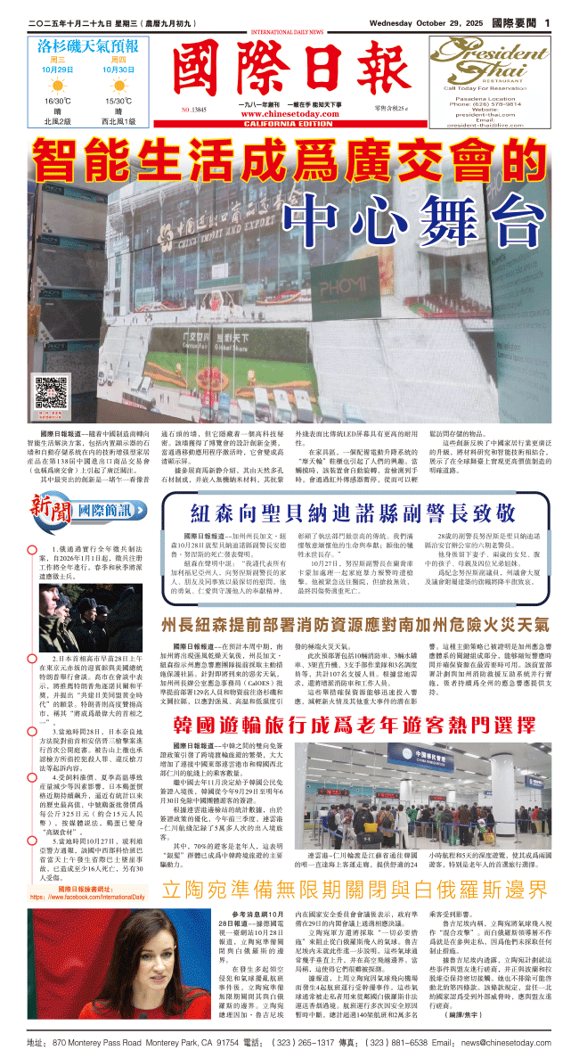29日國際日報1-國際要聞 发布日期:2025/10/29 来源:國際日報 打印