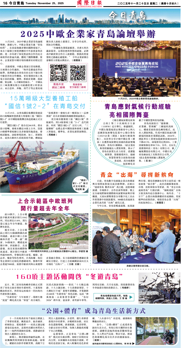 25日國際日報16-今日青島 发布日期:2025/11/28 来源:國際日報 打印