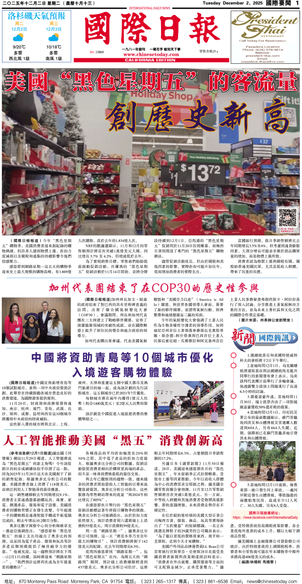 2日國際日報1-國際要聞 发布日期:2025/12/2 来源:國際日報 打印