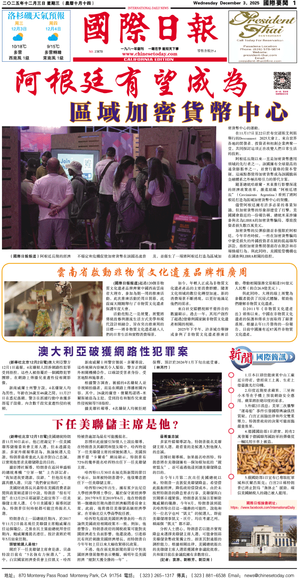 3日國際日報1-國際要聞 发布日期:2025/12/4 来源:國際日報 打印