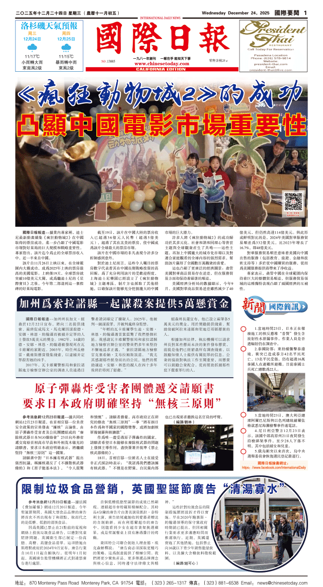 24日國際日報1-國際要聞 发布日期:2025/12/24 来源:國際日報 打印