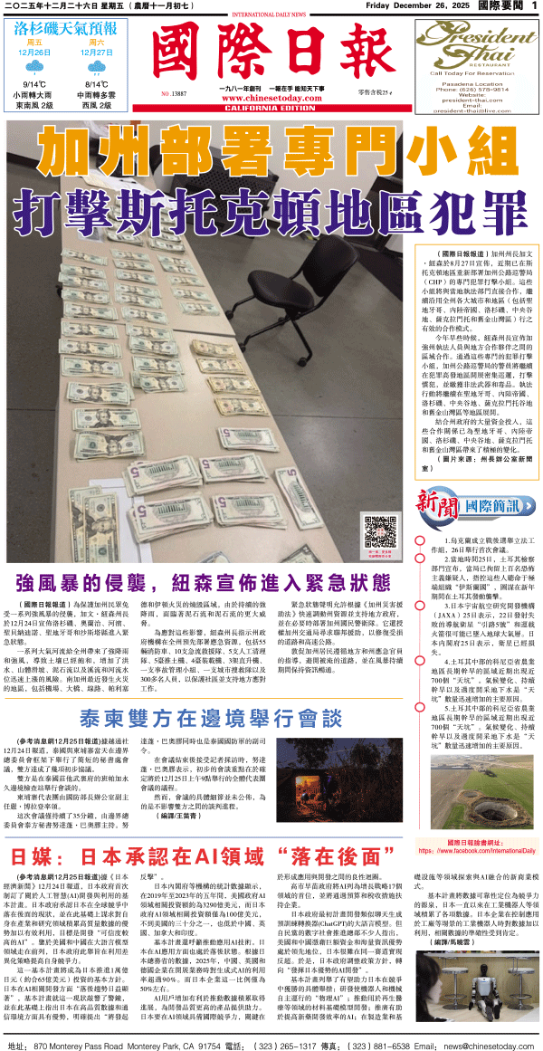 26日國際日報1-國際要聞 发布日期:2025/12/26 来源:國際日報 打印