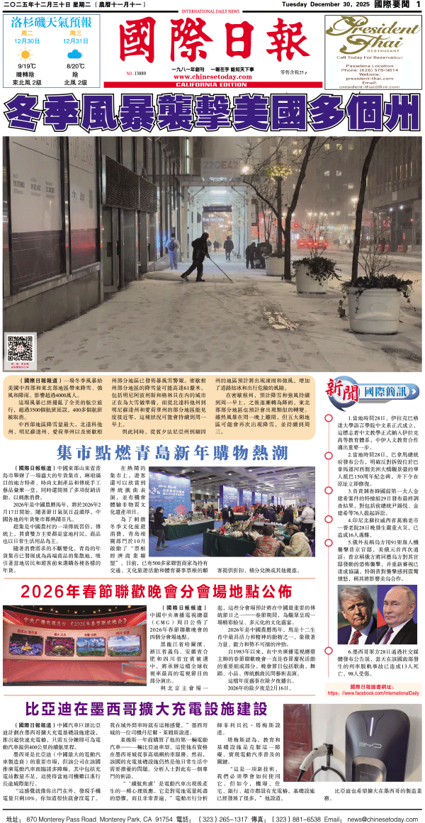 30日國際日報1-國際要聞 发布日期:2025/12/31 来源:國際日報 打印