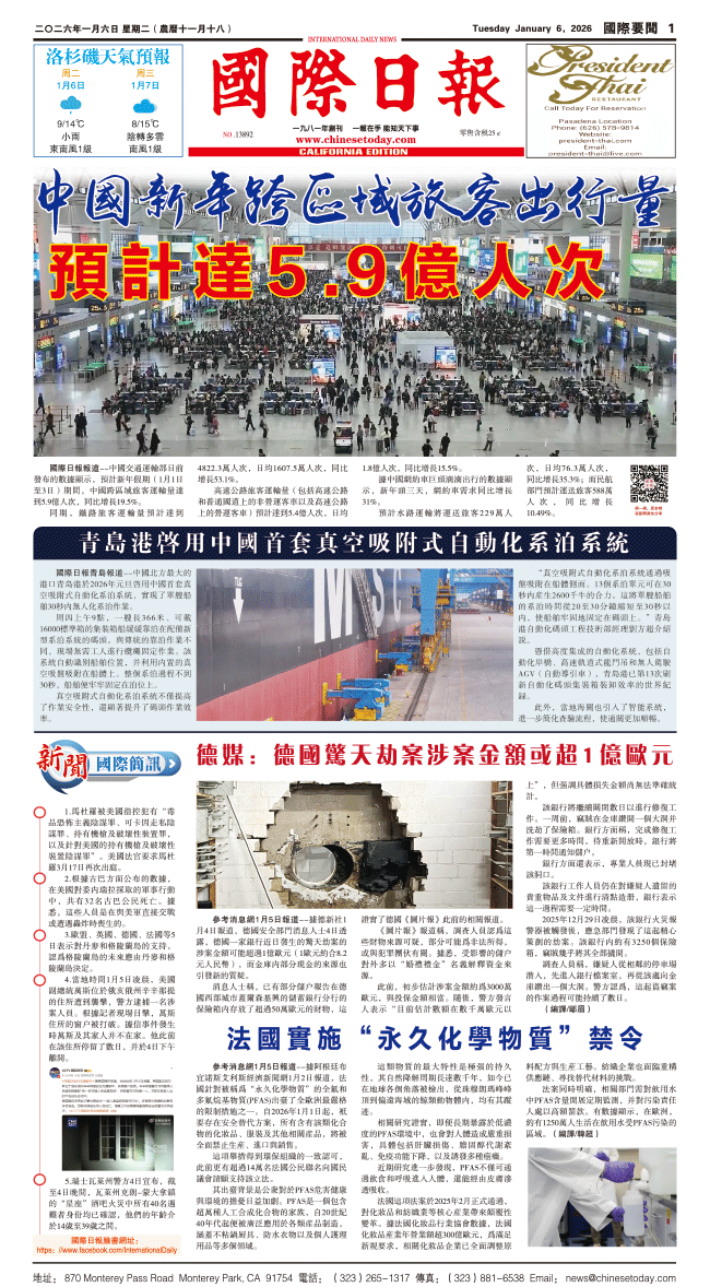 6日國際日報1-國際要聞 发布日期:2026/1/6 来源:國際日報 打印
