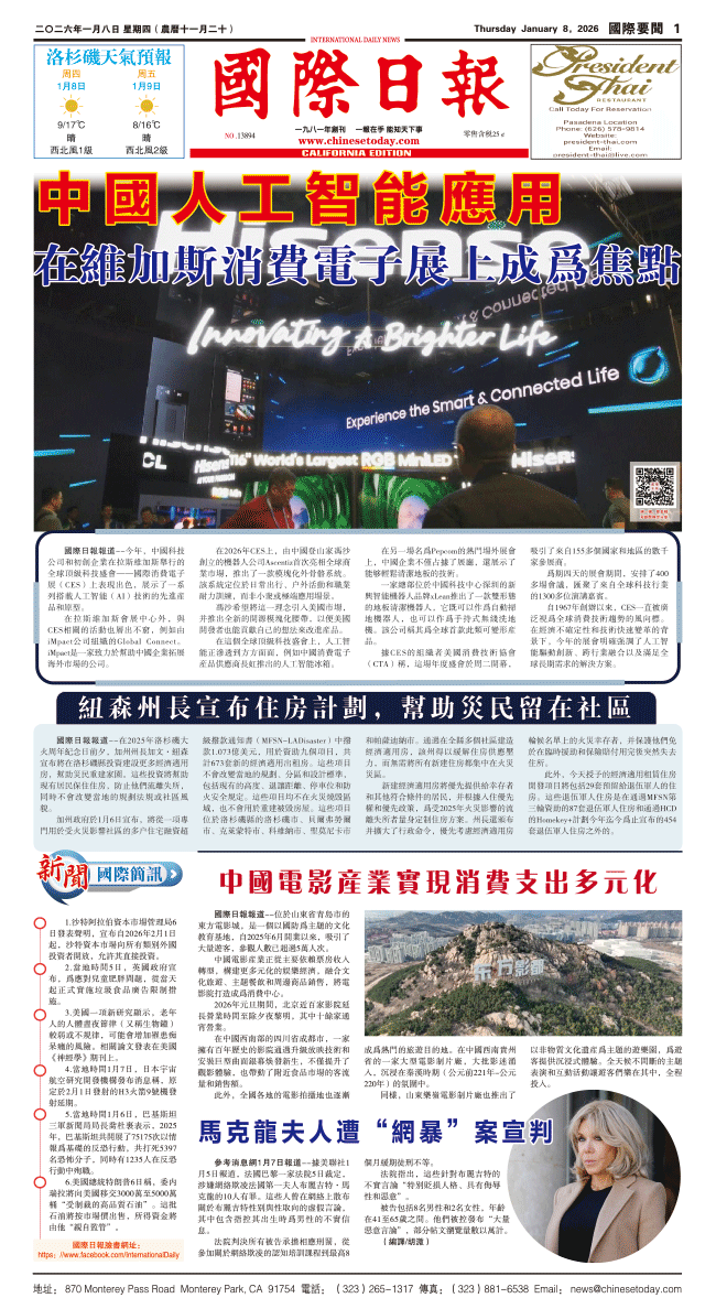 8日國際日報1-國際要聞 发布日期:2026/1/9 来源:國際日報 打印