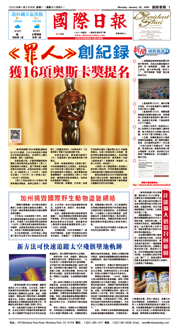 26日國際日報1-國際要聞 发布日期:2026/1/26 来源: 打印