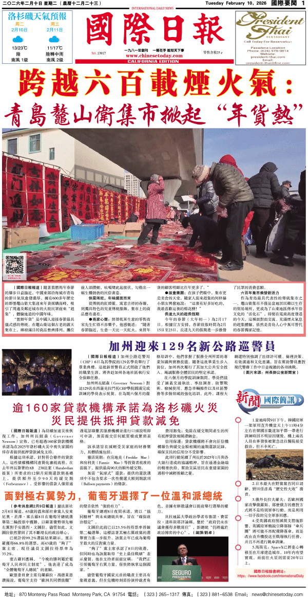 10日國際日報1-國際要聞 发布日期:2026/2/10 来源:國際日報 打印