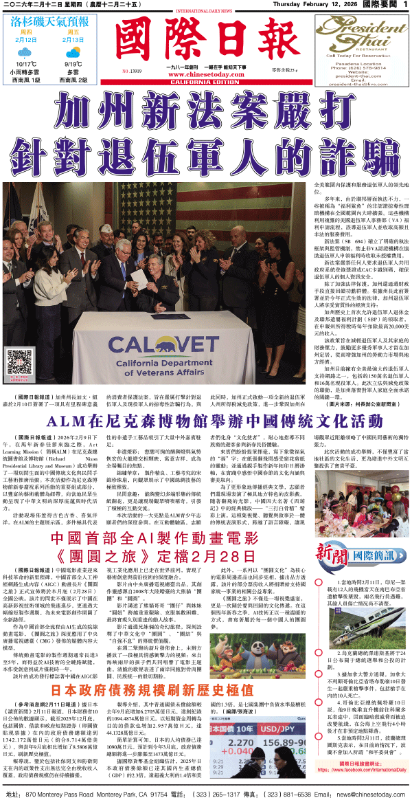 12日國際日報1-國際要聞 发布日期:2026/2/12 来源:國際日報 打印