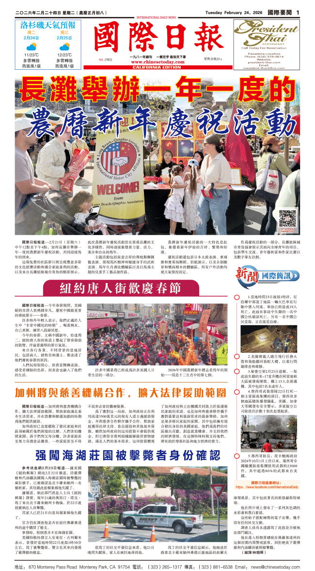 24日國際日報1-國際要聞 发布日期:2026/2/24 来源:國際日報 打印