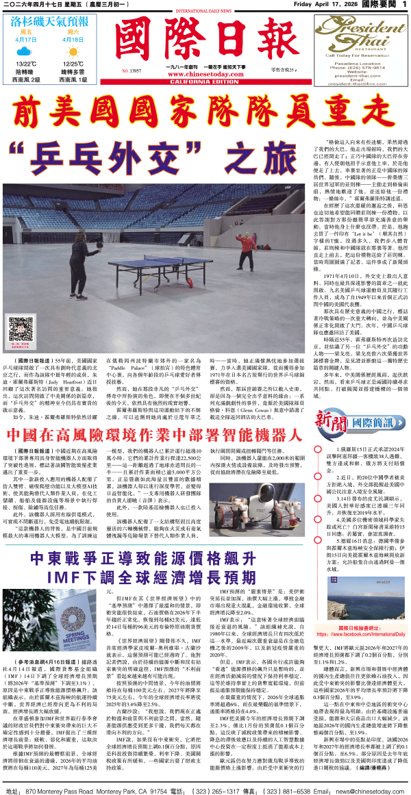 17日國際日報1-國際要聞 发布日期:2026/4/20 来源:國際日報 打印