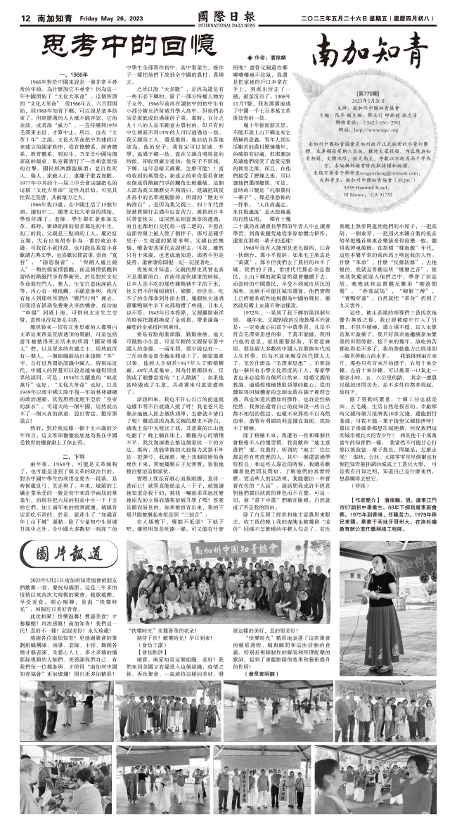 26日國際日報12-南加知青 发布日期:2023/5/26 来源:國際日報 打印