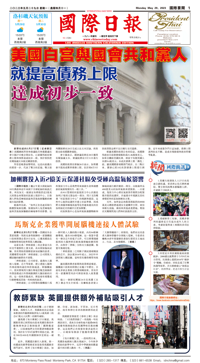 29日國際日報1-國際要聞 发布日期:2023/5/29 来源:國際日報 打印